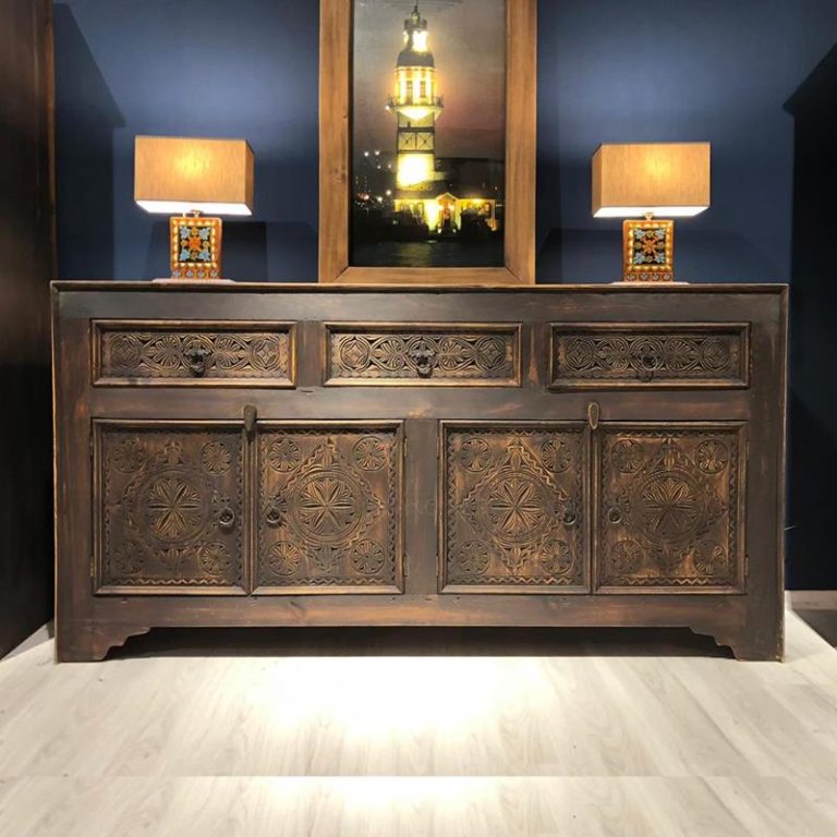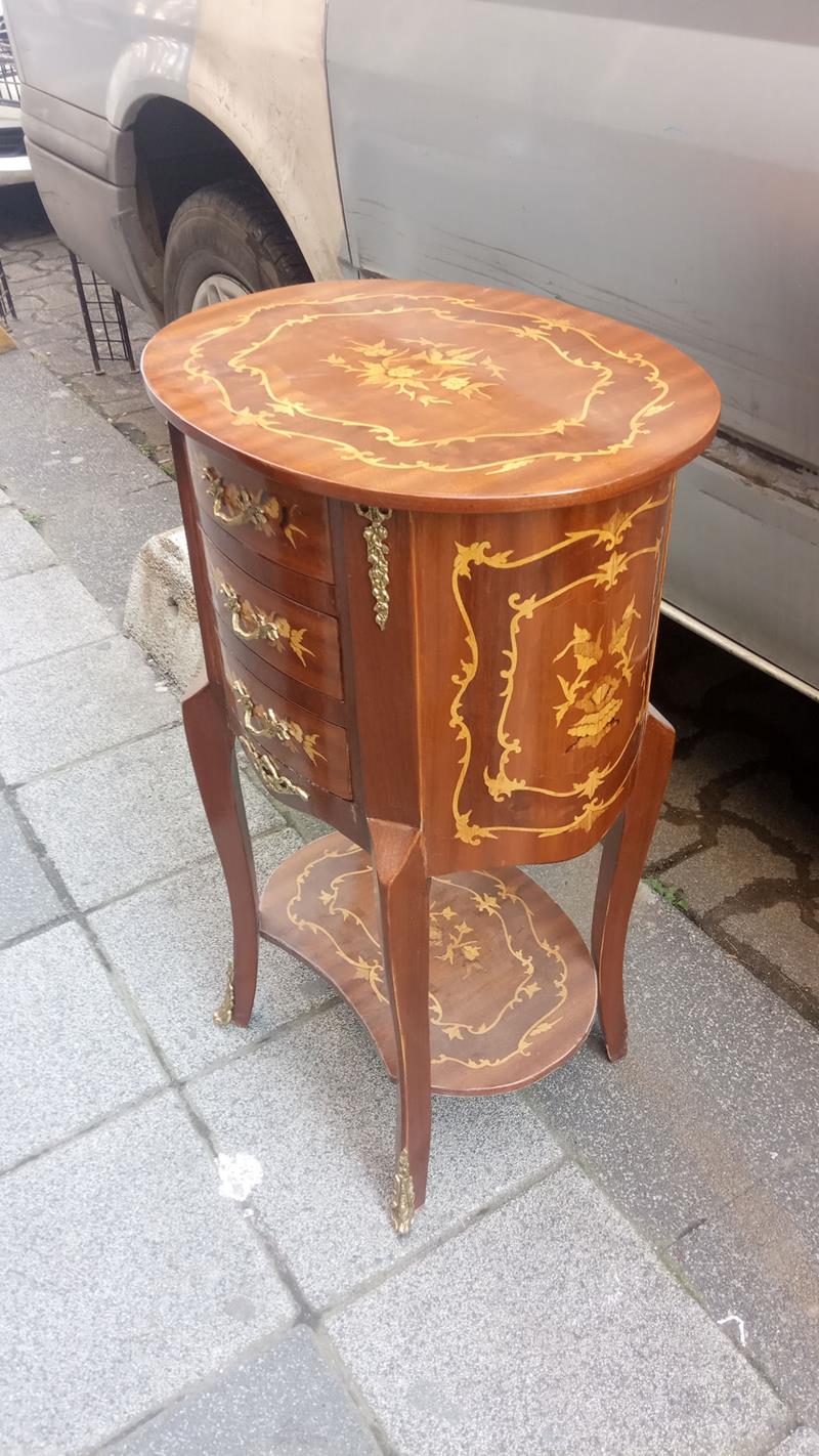 Fransız komidin, 3 çekmeceli olarak bulunmaktadır. Komidinin alt bölümünde ayrı bir raf bulunuyor. İşlenmiş bir tasarıma sahiptir. Çekmece önündeki detayları, ürünün yan bölümleri üstü ve altta kullanılan tarafındaki detayı aynı şekildedir. Osmanlı motiflerine ve antik ürünlere ilginiz varsa kesinlikle tavsiye edilmektedir. Çekmeceleri geniş olduğu için rahatlıkla kullanılır. Online olarak sipariş etmeniz mümkün. Aynı zamanda sistemde satıcı ile irtibata geçip, ürünle alakalı detaylı bilgilendirmeyi alabilirsiniz.