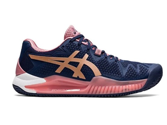 Tenis için geliştirilen lacivert pembe kadın spor ayakkabısı renkleri ve tasarımıyla dikkat çeker. Sporcuların daha rahat hareket etmeleri için geliştirilen Asics gel-resolutıon 8 clay kusursuz bir tenis keyfi yaşamanızı sağlar. Kadın ayak numaralarına göre üretilmiş olan ayakkabı alt kenarlarda yer alan pembe detaylarla hoş bir görünüm sergiler. Bağcıklı ve nefes alan özellikteki ürün, parmak koruyucu- topuk ve ön ayak destek yatıklarına sahiptir. Dynawall teknolojisinin kullanımı teniste önemli olan denge kurulumunu kolaylaştırır. Özel tasarım olan spor ayakkabısı tam ayak numarasına göre alınmalıdır. Kullanılan teknolojiler sporcunun kortu hissetmesini ve seri hareketlerde tam zemin tutuşu sağlar. Seri geçişlerde korunan denge teniste var olan dur-kalk darbelerinin hissedilmesinin en alt seviyeye düşürür. Ayakkabının tasarımı tenis kotunda rakibe karşı avantaj sağlar.