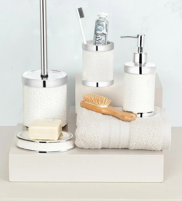 Banyoları tamamlayan setler ortamın havasını tamamen değiştirmektedir. Evinizin diğer alanlarıyla uyumlu tasarladığınız banyoya minik eklemeler yaparak özel alanınızı daha konforlu hale getirebilirsiniz. Claire 4-Lü banyo seti, rengi ile tüm renklere uygundur. Sabunluk, katı sabunluk, diş fırçası kutusu ve tuvalet fırçasından oluşan setle evinizin ilk değişimini gerçekleştirin. Porselen ürün, banyodaki dağınıklığı kaldırırken aynı zamanda dizaynında büyük farklar yaratır. Uygun havlu ve diğer detaylarla benzersiz sizi yansıtan bir banyoya sahip olursunuz.