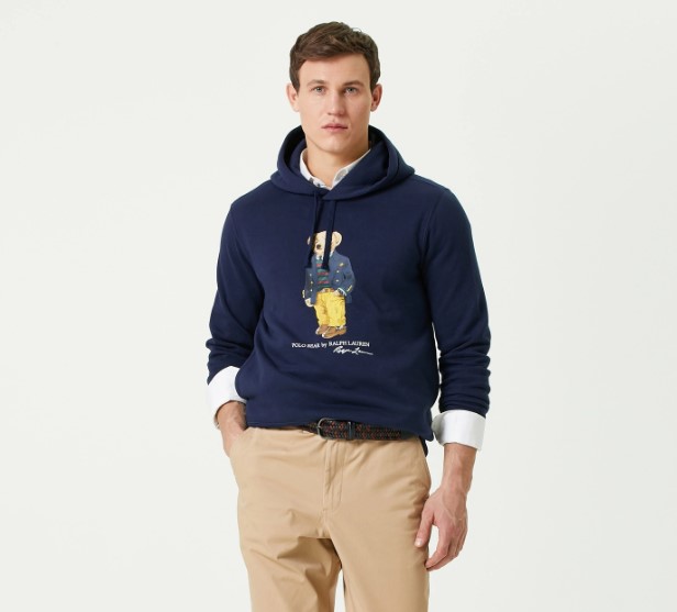 Logolu ve ayıcık figürlü kapşonlu sweatshirt tüm kombinlerin tamamlayıcısı. Polo Ralph Lauren lacivert kapüşonlu logolu sweatshirt %67 Pamuk ve %33 polyester kumaş yapısına sahip.