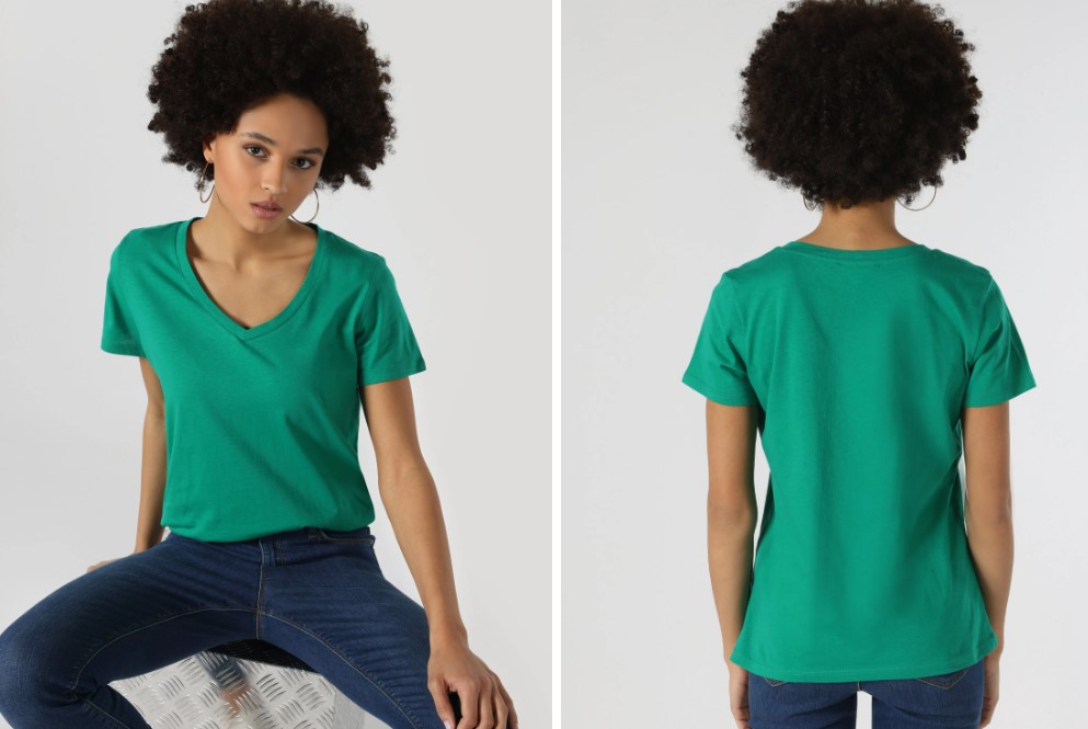Regular fit V yaka basic yeşil kadın kısa kol tişört, kesimi ve dokusuyla rahat bir kullanım sağlıyor. Bahar ya da yaz aylarında daha çok tercih edilen ürün her mevsim şık kombinler yaratmanızı sağlıyor. Vücuda yapışmayan tişört her giyim tarzına uygun. Sade tasarımlı ürün evde, markete giderken, parkta otururken giyilebilir. Günlük kullanımda tişört kotlar, mini etekler, şortlar veya eşofman altlarıyla kombinlersiniz. Spor ayakkabı ve farklı pantolon modelleriyle bu parça sizin tarzınızı tamamlar.