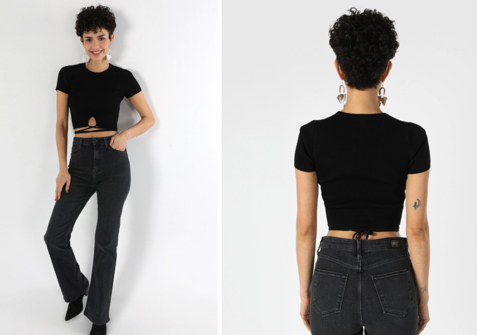 Kısa kollu tişörtler kategorisine giren crop modelleri her daim moda. Crop modeli sevenler için slim fit bisiklet yaka crop siyah kadın kısa kol tişört oldukça uygun. Asaleti simgeleyen siyah renk ile bel detayları tam bir bütünlük sağlamakta. Fit vücuda sahip her kadının tercihi olan ürünler tarzınızı yansıtır. Günlük kullanımda sevilen parça topuklu ayakkabı ve takılarla gece kıyafetine düşünür. Spor ve rahat giyinmeyi sevenlerde bu ürünü alabilir.