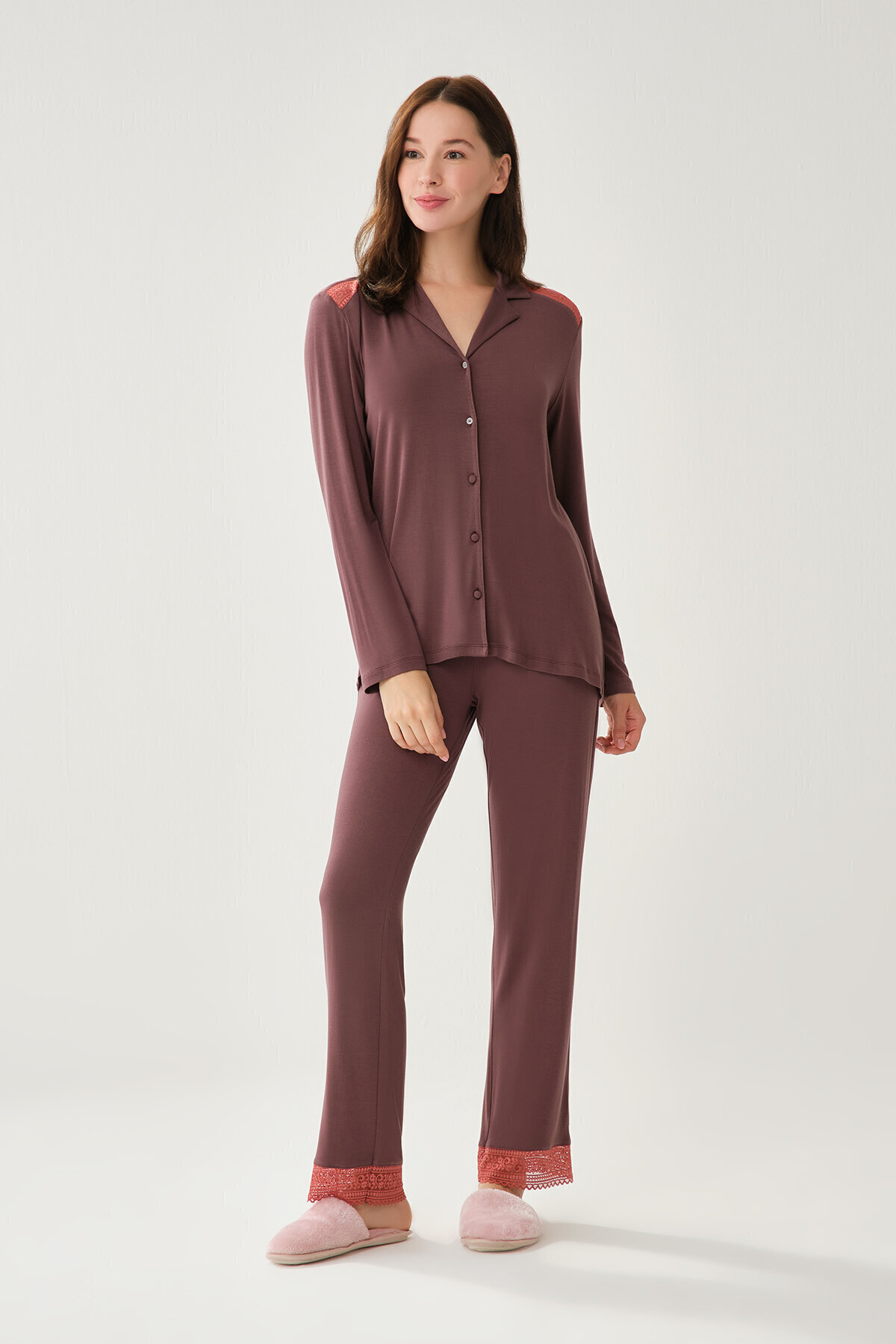 Dagi, pijama takımlarında olduğu gibi tek satılan alt parçalarla da kendi stilinizi yansıtmanızı sağlar. Kiremit rengi olan bu ürünün paça kısmındaki dantel detayı bulunur. Bu detay pijama altının sadeliğini kıran özel bir dokunuştur. Üzerine askılı, kısa kollu ya da uzun kollu parçalarla kendi uyku stilinizi yaratabilirsiniz.