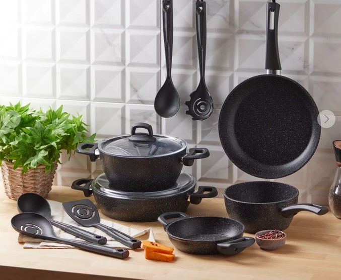 13 parça tencere seti ile evinizde lezzetli ve sağlıklı yemekler pişireceksiniz. Emsan harmony 13 parça tencere seti siyah renk ve granit kaplama olarak üretilmiştir. Set içerisinde ; 22 cm 3 litrelik derin tencere, 22 cm 2.9 litrelik karnıyarık tenceresi, 26 cm 1.9 litrelik tava, 18 cm 1.7 litrelik sütlük ve 18 cm tek adet sahan bulunmaktadır. Satın almak için sepetinize eklediğinizde %20 indirim oranından yararlanacaksınız.