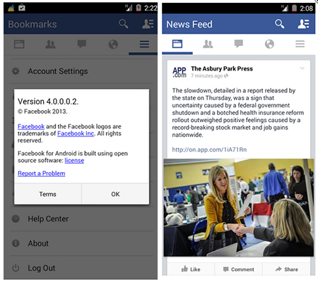 Android için Facebook uygulamas?n?n yeni arayüze sahip güncellenmi? sürümü bugün bir site taraf?ndan s?zd?r?ld?. Güncellenmi? uygulaman?n ekran görüntülerine bakacak olursak, ekran?n sol taraf?n? kayd?ran menü ikonu kald?r?lm?? durumda. 3 katl? slide-out menü tarz?n? birçok uygulamada kullan?lmaya ba?lanmas?n? dü?ünürsek bu olay biraz garip geliyor.