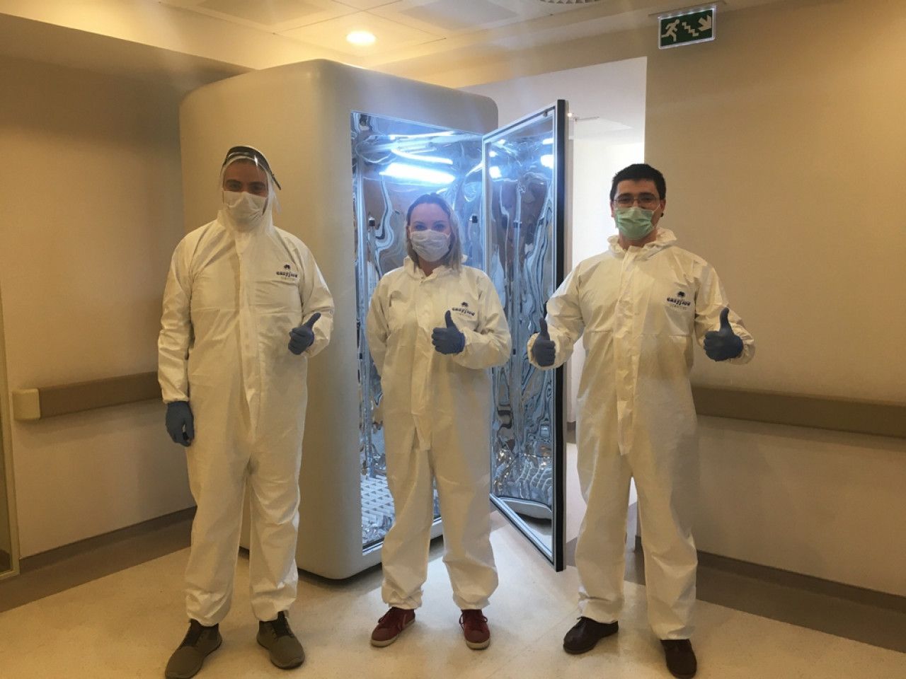 Dünyanın birçok yerinde ve Türkiye’de alışveriş merkezleri, havaalanları, metrolar gibi halkın yoğunlukta olduğu mekanlarda bu amaçla kullanılan ultraviyole alet olmakla birlikte el cihazı olarak ve sadece sağlıkla ilgili çalışanlara özel bir cihaz ve kabin ilk kez Türkiye’de geliştirildi. El cihazı bir çok virüsü bir dakika içinde yok denecek kadar azaltıyor. Dezenfeksiyon kapısı karantina katlarının girişlerinde kullanılmak için geliştirildi ve 15 saniye gibi bir zamanda virüsleri etkisiz hale getiriyor. Dezenfeksiyon kabini ise hastaların kıyafetlerinin dezenfeksiyonu için geliştirildi.