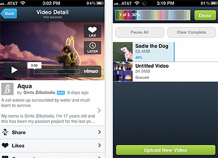 Vimeo’nun iOS versiyonun arayüzü yeni güncelleme ile ba?tan a?a??ya de?i?ti. Tabi bu arayüz de?i?imi ile birlikte eklenen ve ç?kar?lan fonksiyonlar da oldu. Art?k Vimeo’nun iOS versiyonu üzerinden sekmeli site içi gezinti yapabileceksiniz. Bir ba?ka özellik de sosyal a?lar için geli?tirilmi?. Yükledi?iniz videoyu izlerken hiç durdurma i?lemine gerek kalmadan Facebook ve Twitter üzerinden payla?abilirsiniz.