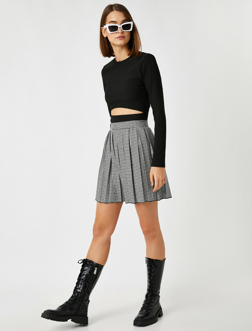 Kareli Etek Pileli Mini
