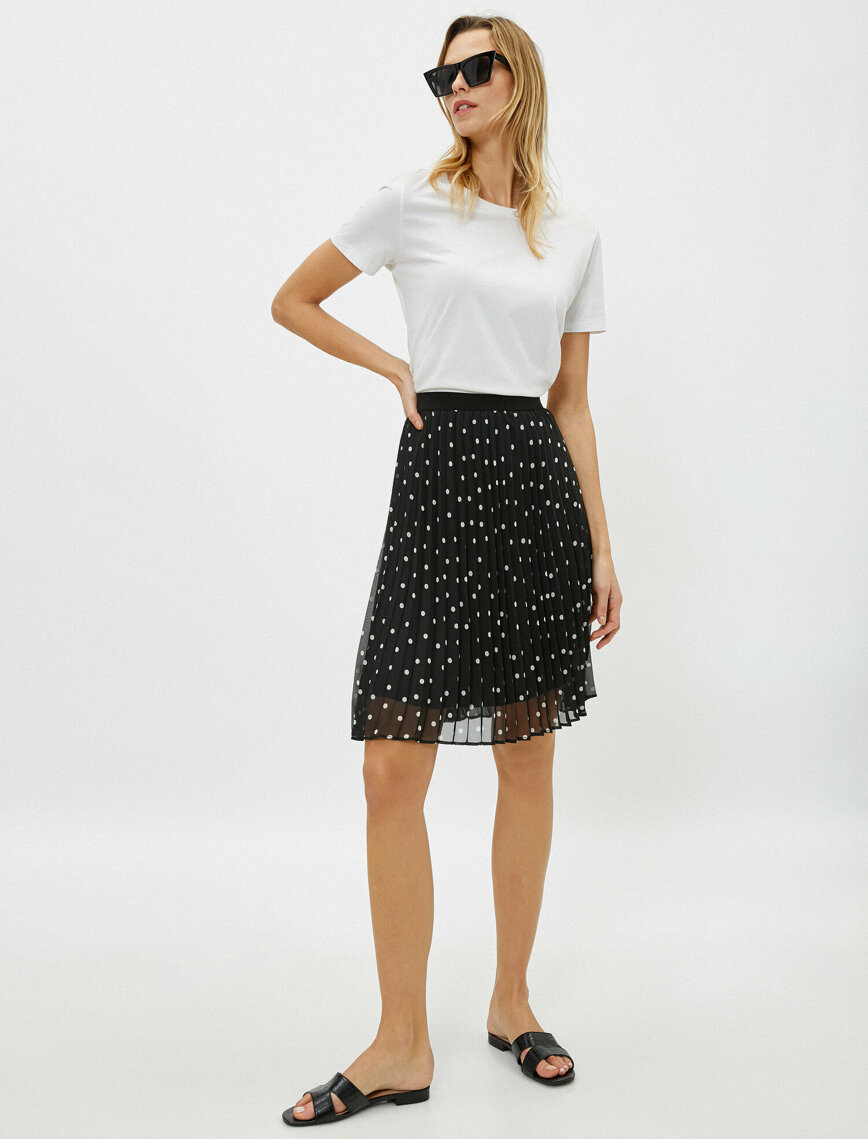 Pileli Etek Puantiyeli Tül